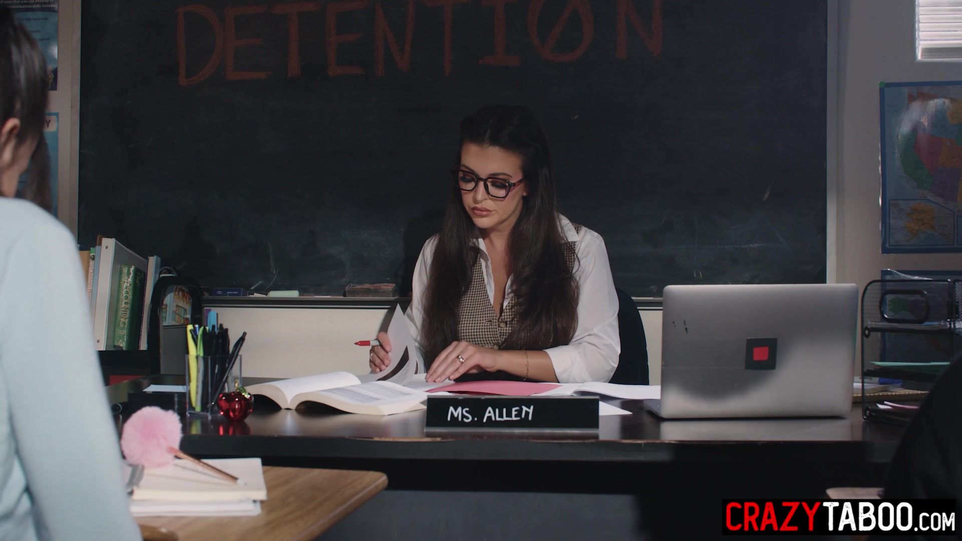 Sexy Latina student gets fucked hard by her classmate in front of teacher