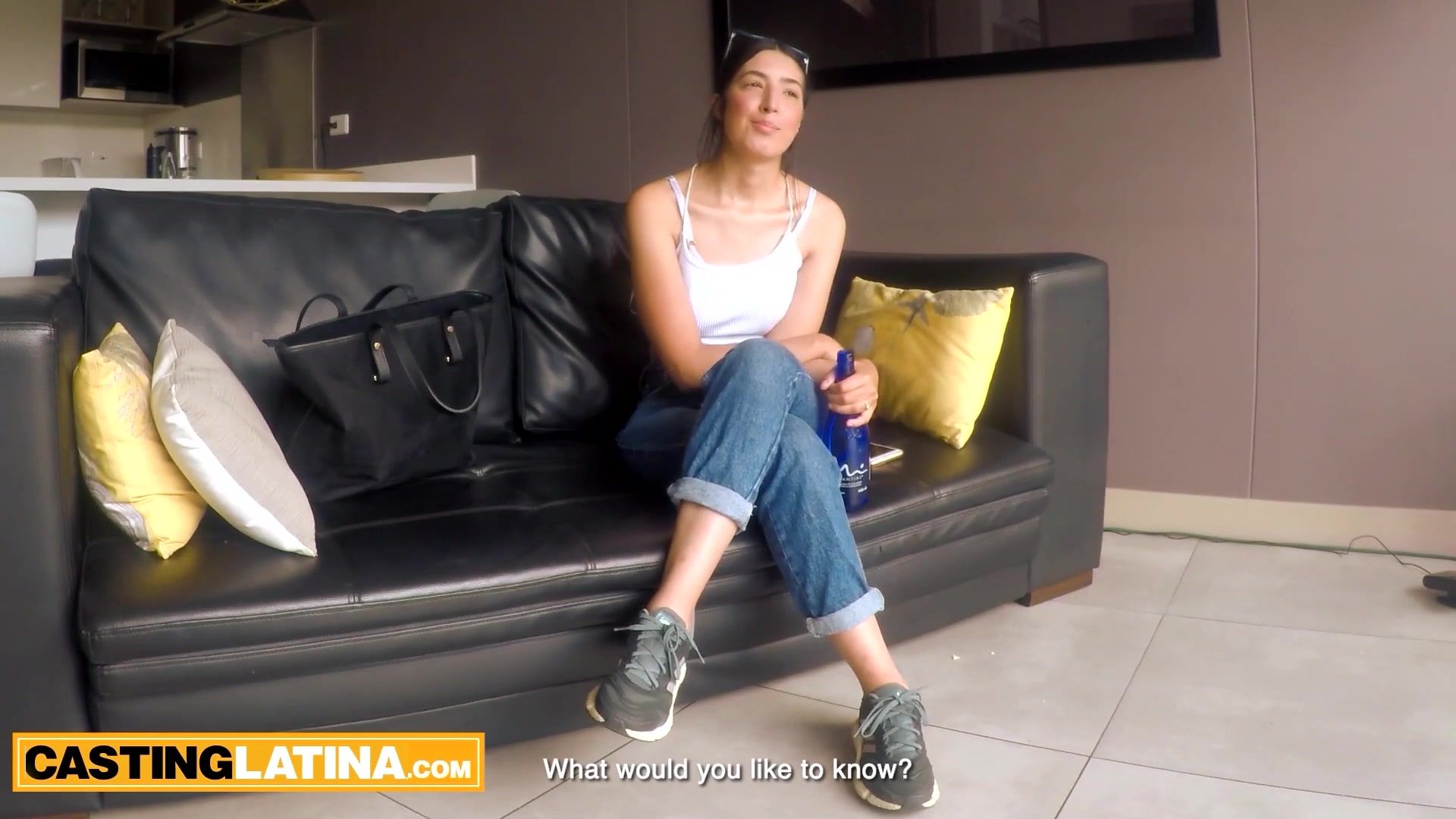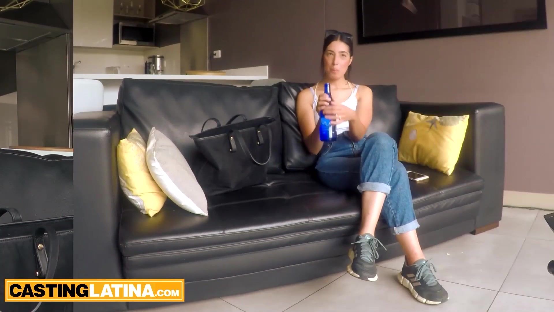 Naughty amateur latina Gianna Diaz with perfect natural tits bargains her sweet pussy to boost her modeling career She takes on a tiny bikini then she grabs the producers big dick and after a blowjob she lets him to use her tight pussy