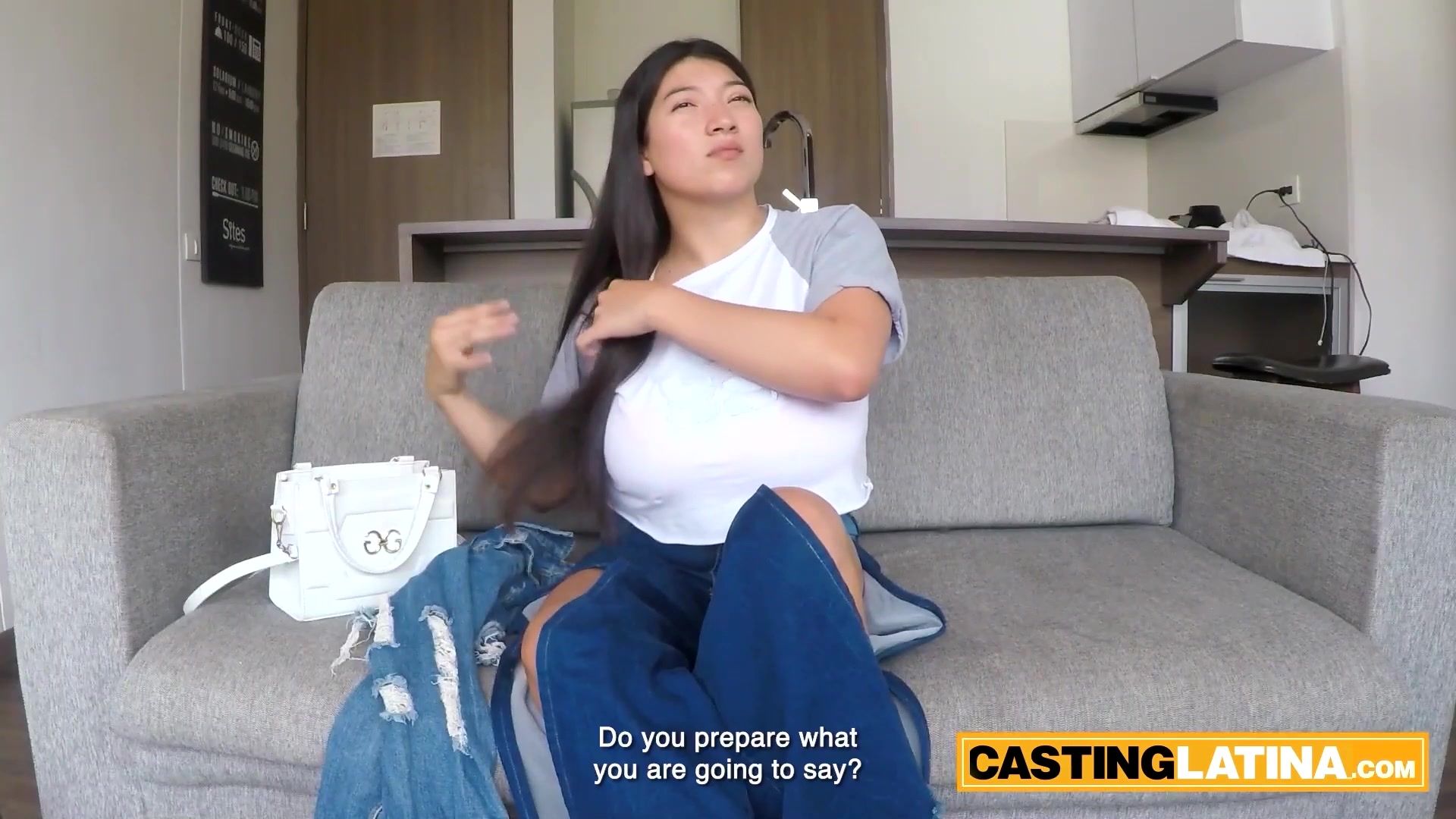 Massive titted amateur BBW latina thot Kaori convincing the perv producer